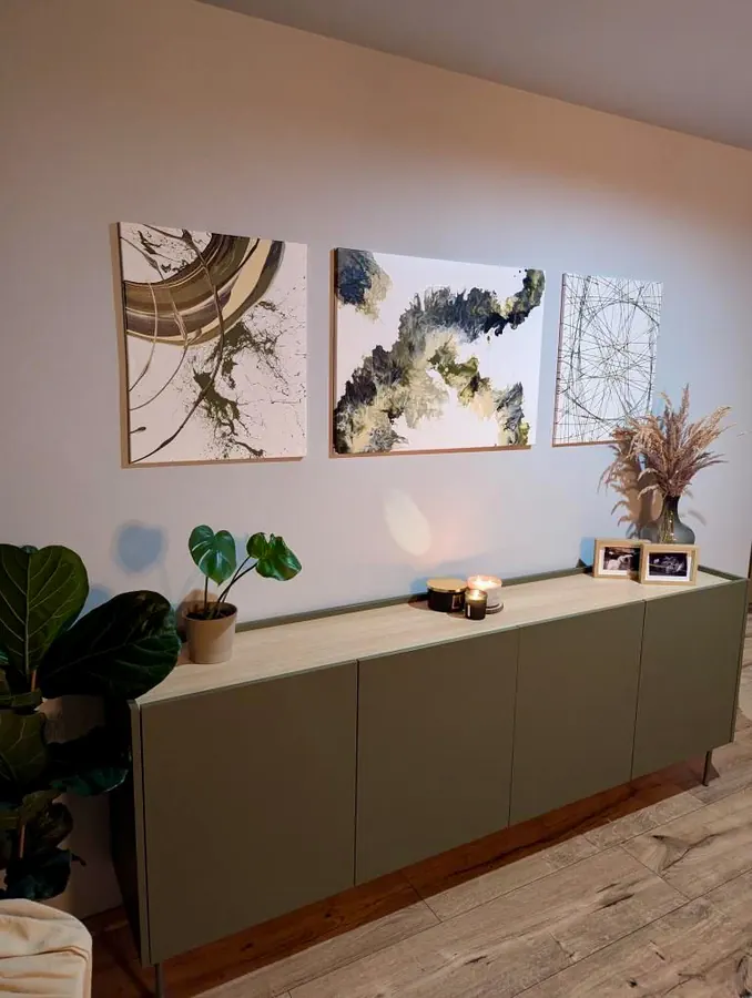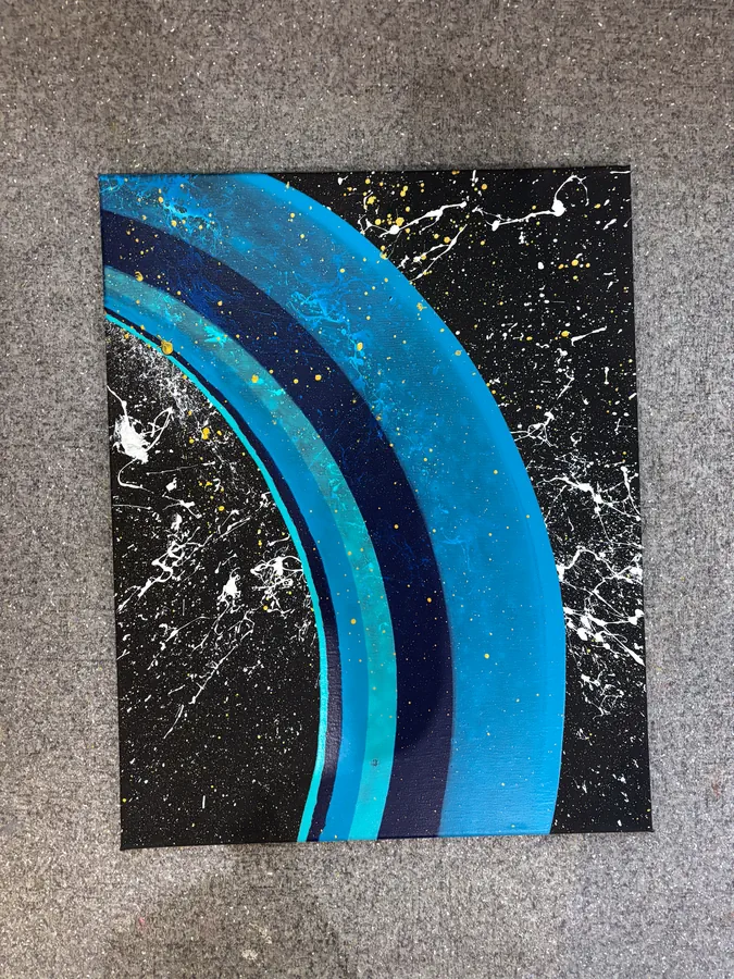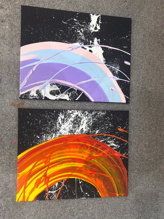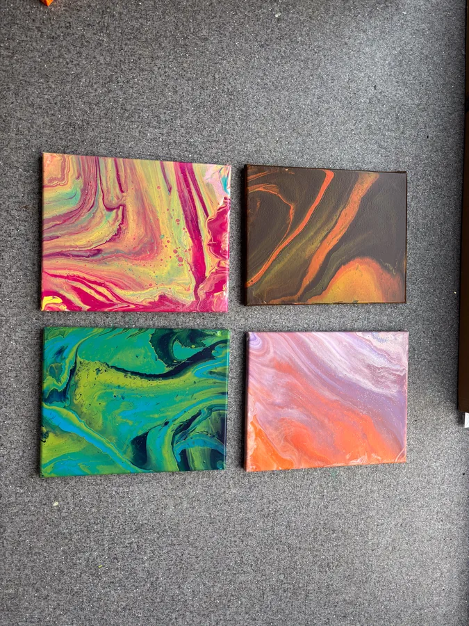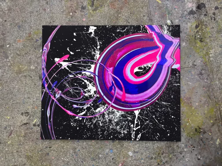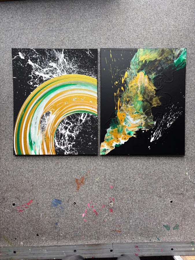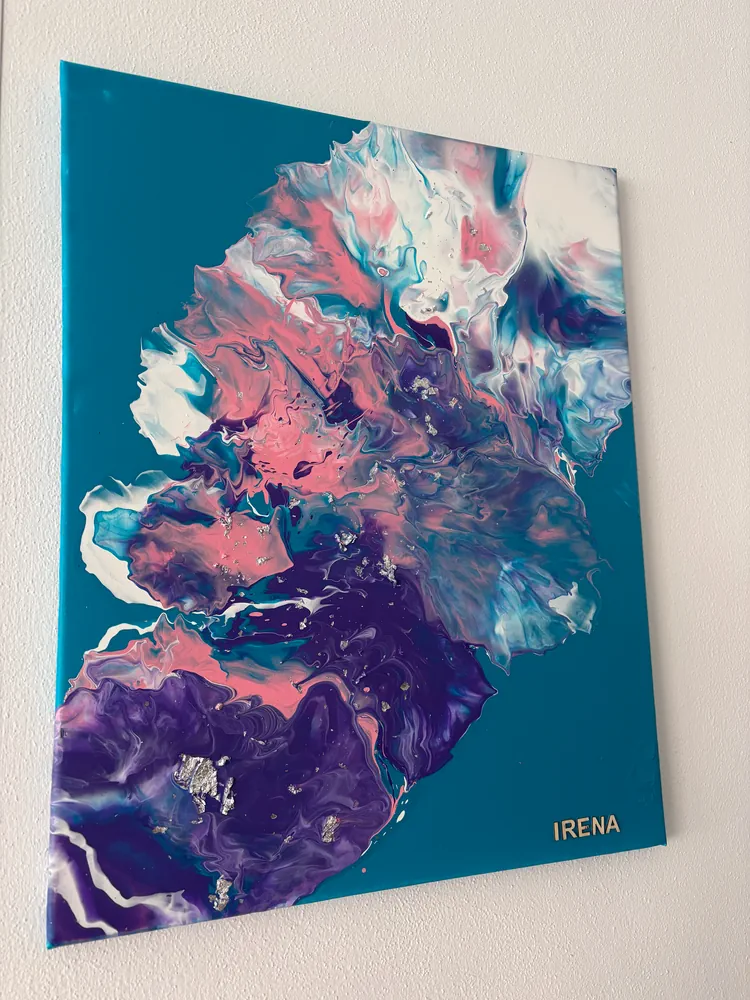 Používáme kvalitní akrylové barvy – syté, snadno použitelné a voděodolné. Nabízíme i prémiové odstíny za malý příplatek. Barvy mícháme s médiem pro ideální konzistenci a trvanlivost vašeho díla.